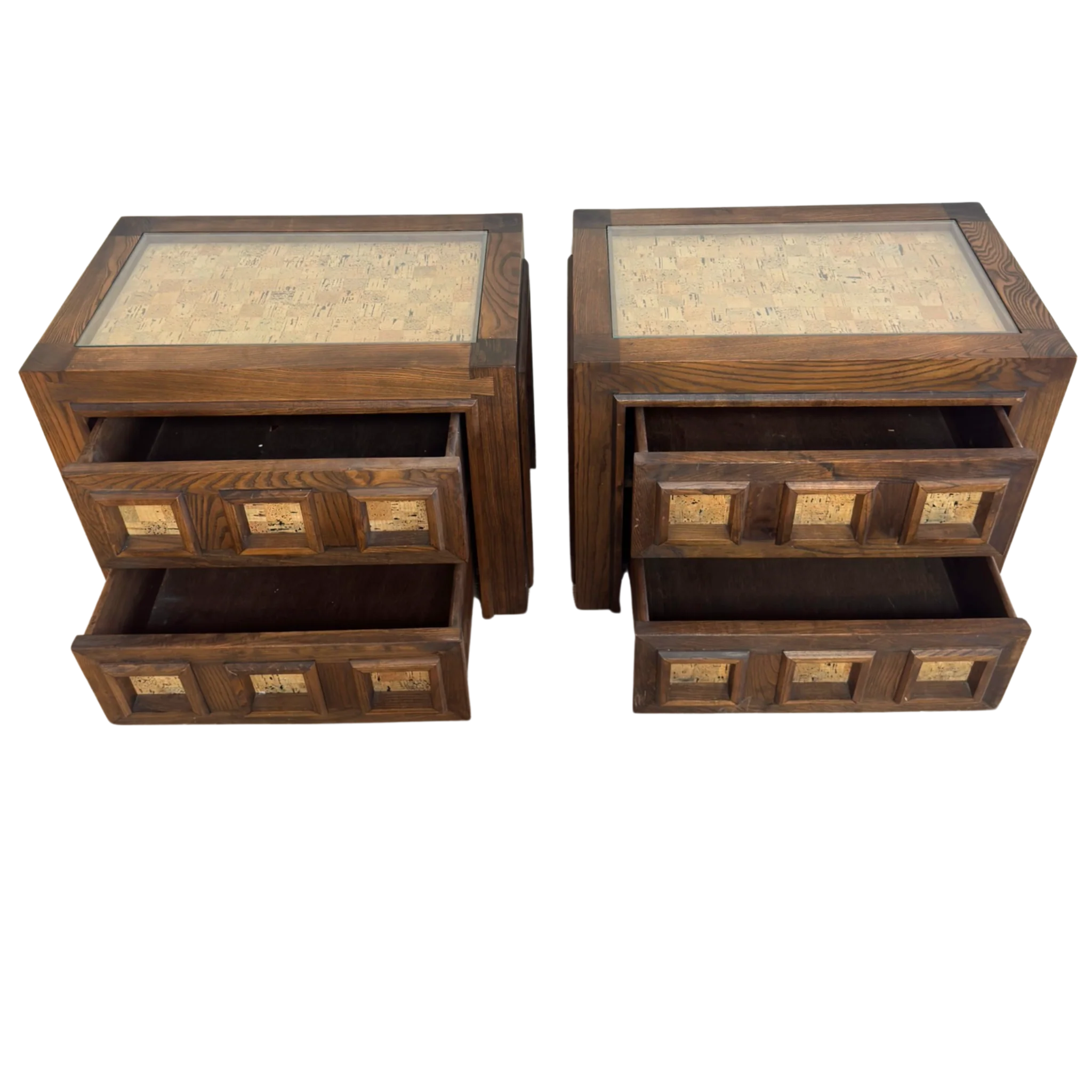 Pair of Brutalist Oak and Cork Nightstands, 1970s