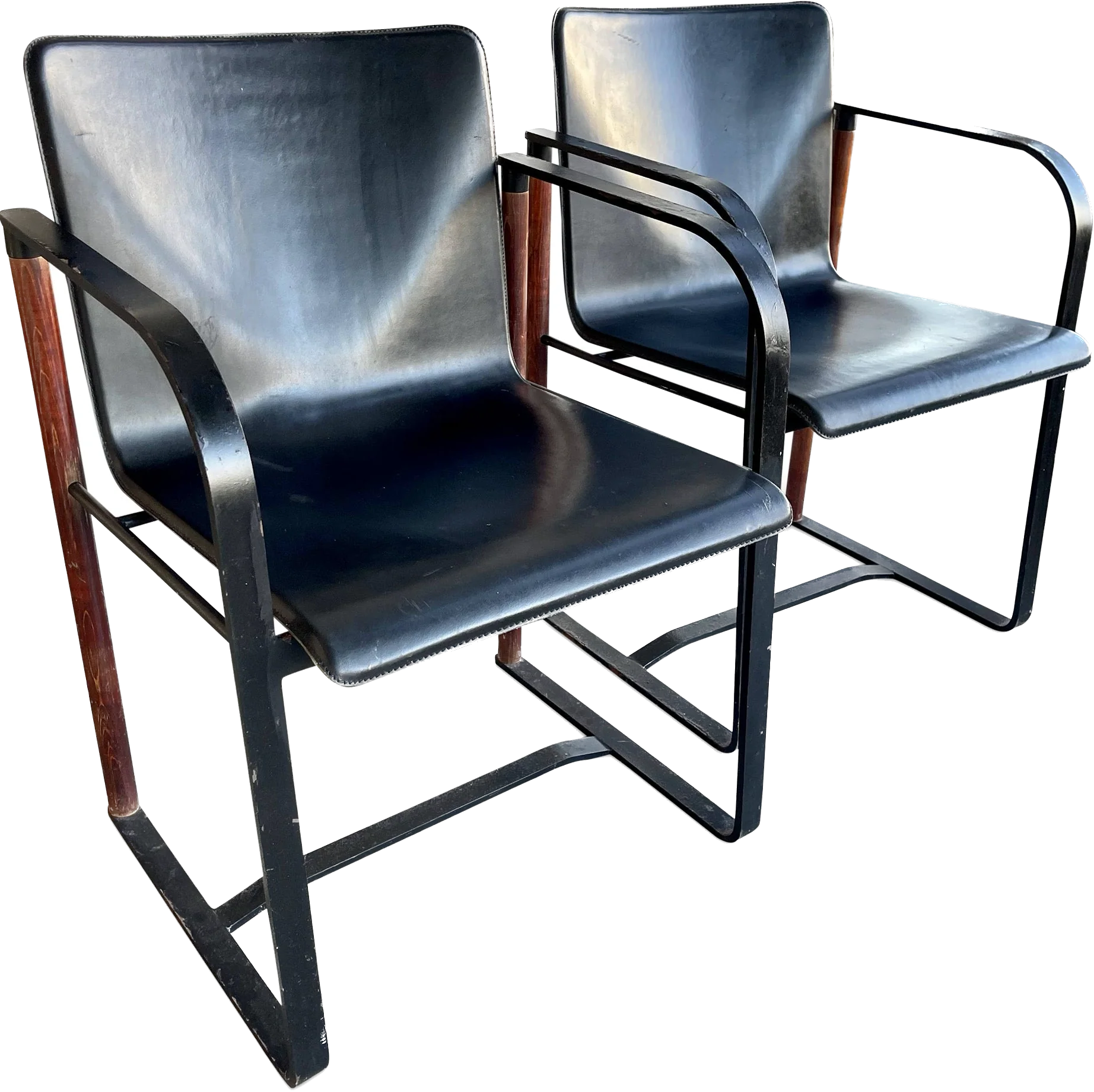 Pair of Iron and Leather Arm Chairs—
